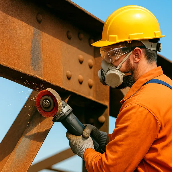 Odstraňujeme korozi, čistíme a připravujeme povrchy tryskáním nebo chemickými metodami, poté nanášíme antikorozní primery a ochranné nátěry.